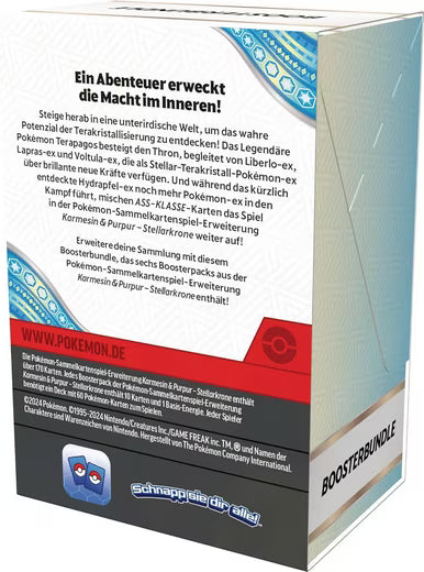 Erweitere deine Sammlung mit diesem Boosterbundle, das 6 Boosterpacks der Pokémon-Sammelkartenspiel-Erweiterung Karmesin & Purpur – Stellarkrone enthält!